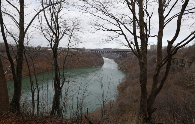 A view of the Niagara river from the Great Gorge Railway Trail. A nearly $1 million restoration effort to eliminate invasive species is in the works for a stretch of the gorge from roughly the Rainbow to Whirlpool bridges. Credit: Mark Mulville/The Buffalo News.
