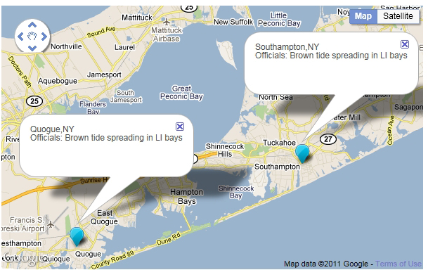 For more on the cause, problems and history of brown tide, for which New York Sea Grant is cited the source, see the "Brown Tide Primer" section of the recent Newsday article (