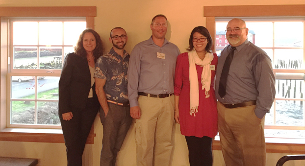 Wick Award recipient and former (retired) New York Sea Grant Great Lakes Fisheries Specialist Dave MacNeill (at far right) is pictured with (l-r) NYSG Associate Director Kathy Bunting-Howarth, NYSG Seafood Specialist Michael Ciaramella, NYSG Great Lakes Fisheries Specialist Jesse Lepak and NYSG Jamaica Bay Coastal Resilience Specialist Helen Cheng. Credit: Helen Cheng/NYSG