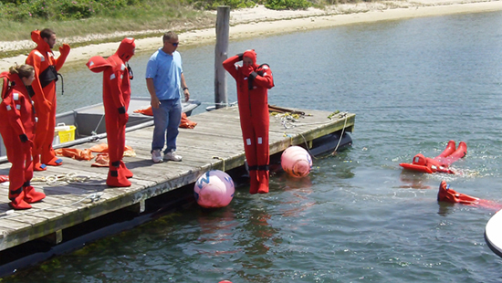 Another key "safety at sea" tip: survival gear, including Immersion suits, PFDs and inflatable life rafts. Photo by Paul C. Focazio, NYSG.