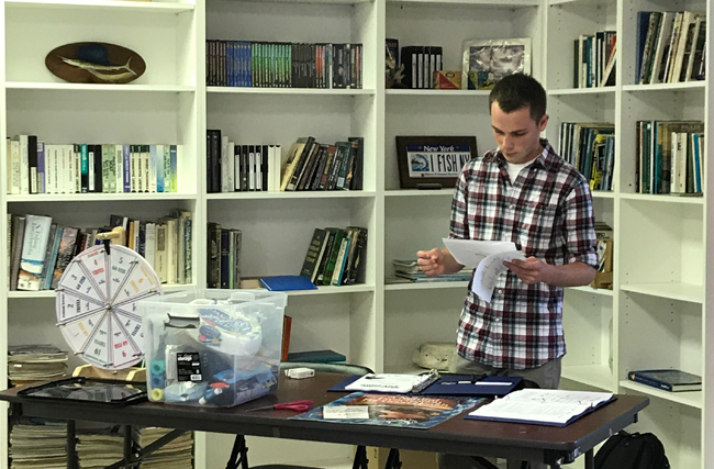 In Summer 2017, Jack Novack (pictured above) helped to design "Seafood Science and Aquaculture Lesson Plans" with NYSG Seafood Specialist Michael Ciaramella. Novack served as a NYSG intern funded through Cornell Cooperative Extension. Credit: Jack Novack, Michael Ciaramella/NYSG.
