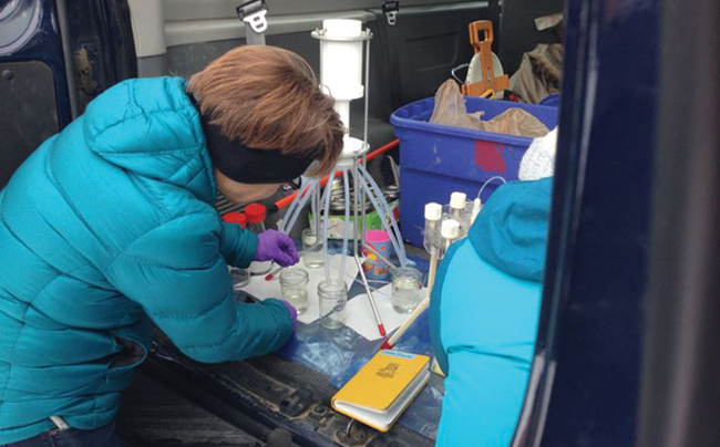 Collecting water samples, Winter 2016. Credit: Chris Lowry.