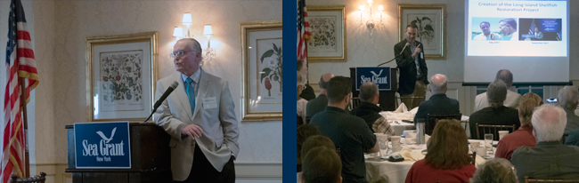 Presenters at the workshop included NYSG's Bill Wise (at left) and Chris Gobler (at right), the Associate Dean for Research and a professor at SBU's SoMAS. Credit: Ryan Strother / NYSG.