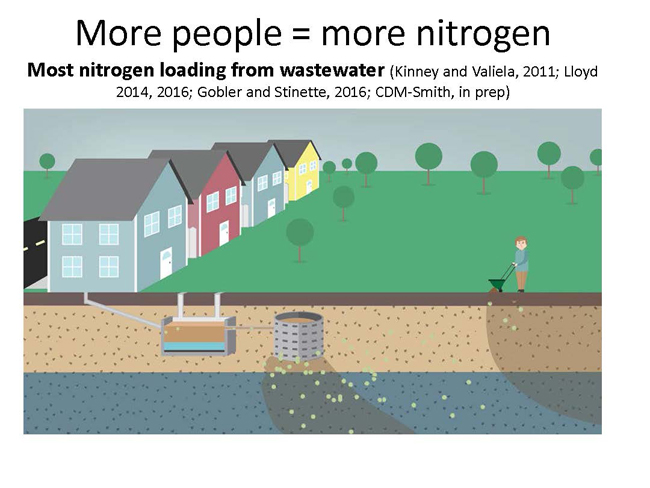 As the population of Long Island has increased since 1985, the concentration of nitrogen in the ground water has also increased. Excessive nitrogen loading is an ongoing threat to coastal ecosystems, economies, pets and human health across Long Island. Most HABs in Suffolk County can be linked to excessive nutrient loading; other drivers include the loss of shellfish and rising temperatures associated with climate change.