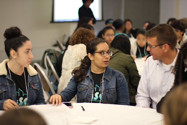 During lunch, resilience professionals joined the students for conversations about resiliency-related careers. Resiliency professionals introduced themselves and led conversations about the potential for careers in the climate and resiliency realm. Tables were assigned to resiliency professionals, where they gave brief introductions of themselves and their work in the climate resiliency field. Students shared perspective on the resiliency issues facing their neighborhoods, as well as the most rewarding parts of the RiSC program and their plans for the future.