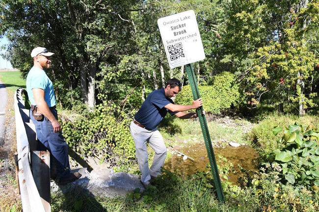 But there are even more features of the sign meant for those passing it on foot or bike: a map, an identification number and QR code for smartphones. The public can scan the barcode and get more information on the tributary, including its characteristics and water quality information, the inspection program and Owasco Lake.