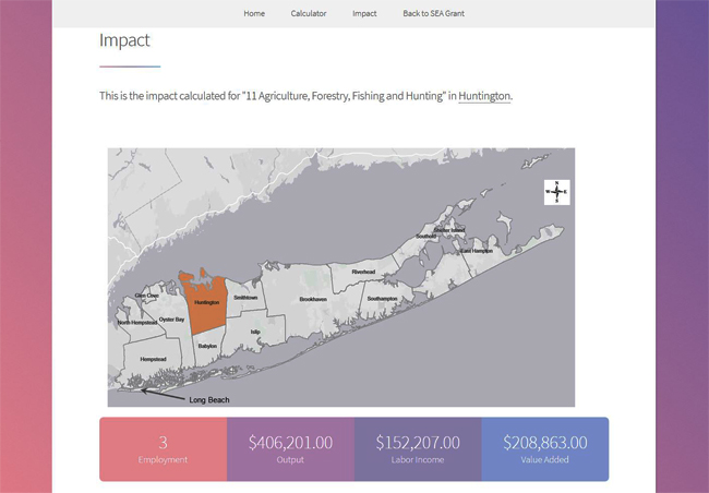 “Fishermen and women often voice concerns about the potential impacts of new regulations on their businesses,” said Clemetson. “Now we can use this economic impact calculator to simulate potential losses and gains in coastal economies.” Clemetson added that the tool can be applied beyond the fishing and agriculture sector to answer questions for different townships across Long Island.