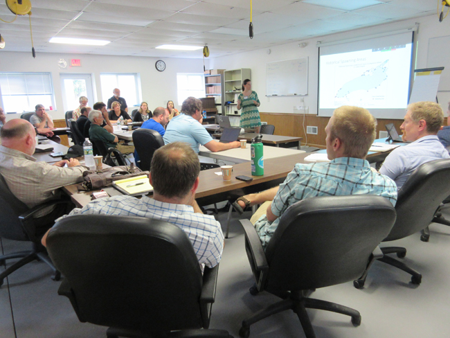 More than 30 experts — representing Cornell University, the New York State Department of Environmental Conservation, the Ontario Ministry of Natural Resources and Fisheries, Queen’s University, SUNY Brockport, University of Buffalo, U. S. Fish & Wildlife Service, and U.S. Geological Survey — met at the Cornell University Biological Field Station in Bridgeport, NY, as part of a Cisco workshop project funded in part by NYSG and The Nature Conservancy.