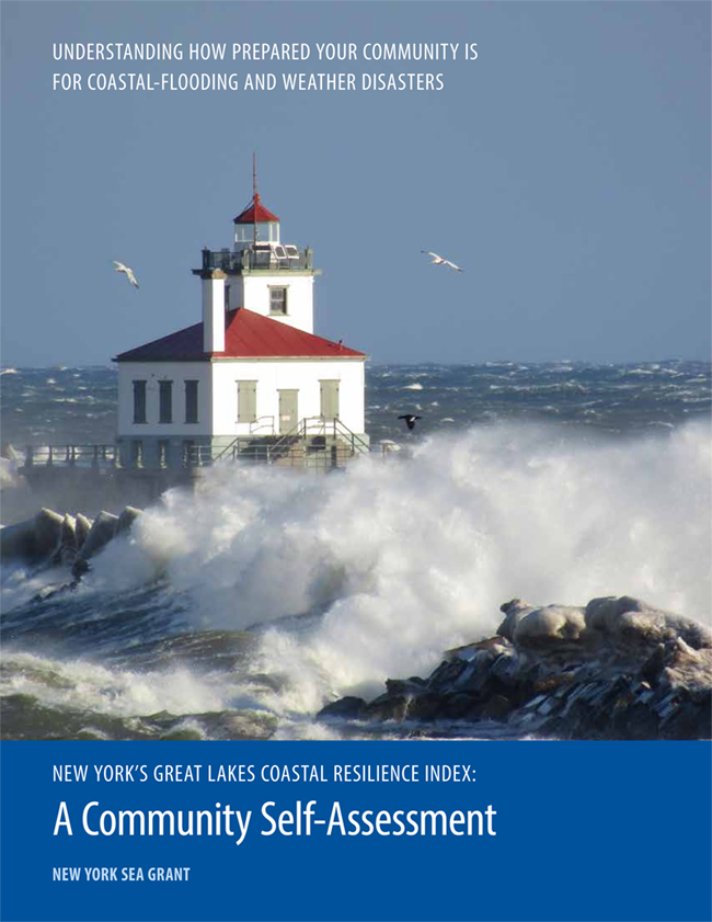 The New York’s Great Lakes Coastal Resilience Index (CRI) is a self-assessment tool developed by New York Sea Grant. To complete the index, community leaders get together and use the tool to guide discussion about their community’s resilience to coastal hazards. The Index provides a simple, inexpensive method for community leaders to perform a self-assessment of their community’s resilience to coastal flooding and weather disasters, identifying weaknesses a community may want to address prior to the next hazard event and guiding community discussion. The Index is not intended for comparison between communities.