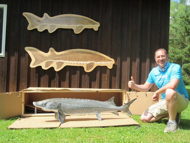 This Lake Sturgeon replica will join others already being used by project partners such as New York Sturgeon for Tomorrow and the Aquarium of Niagara during outreach events to promote Lake Sturgeon conservation. Credit: Jesse Lepak/NYSG.