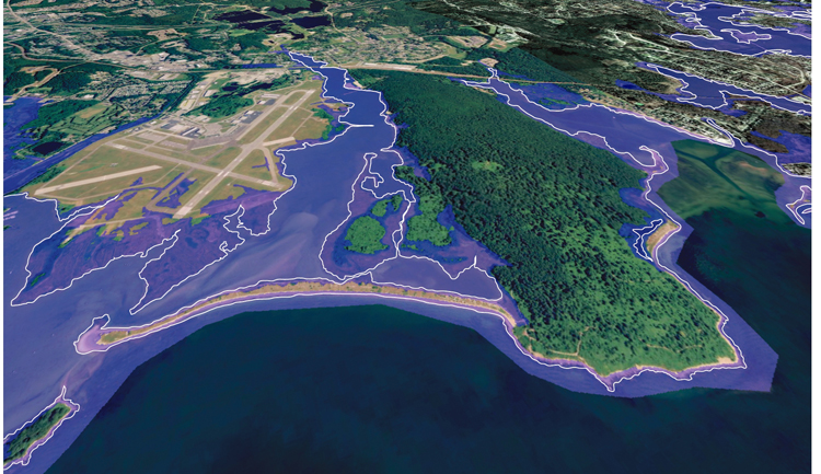 A projection of Bluff Point in Connecticut under a scenario of 36 inches of sea level rise. Courtesy of Long Island Sound Study.