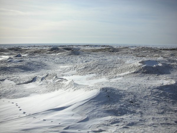 Ice covering Lake Ontario in February 2009, something that has yet to occur this winter season. As NYSG's Dave White points out, this has the St. Lawrence Border Control and others concerned about water levels into the spring and beyond.