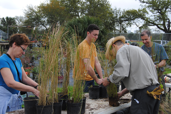 Some commonly used more salt-tolerant plant species used in and around New Orleans restoration sites include Gulf bluestem, bullrush, oyster grass and