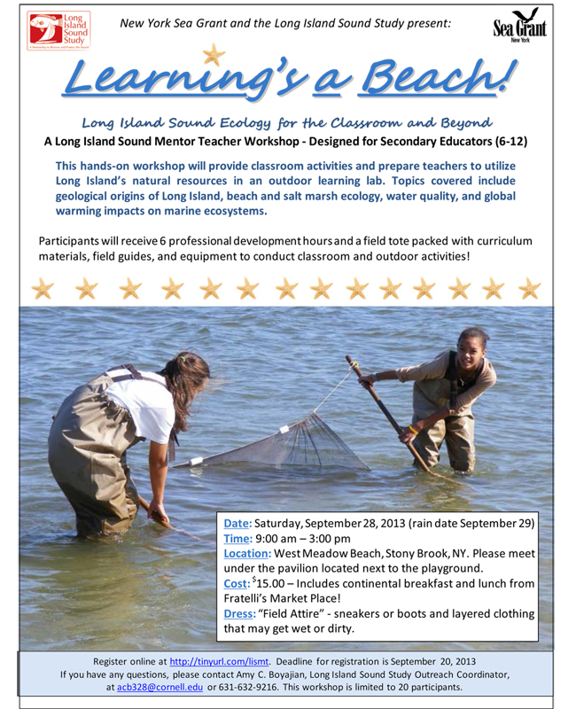 New York Sea Grant and the Long Island Sound Study invite you to attend the Long Island Sound Mentor Teacher Workshops.