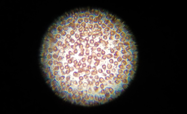 Oyster eggs through a microscope. Credit: Laura Eierman