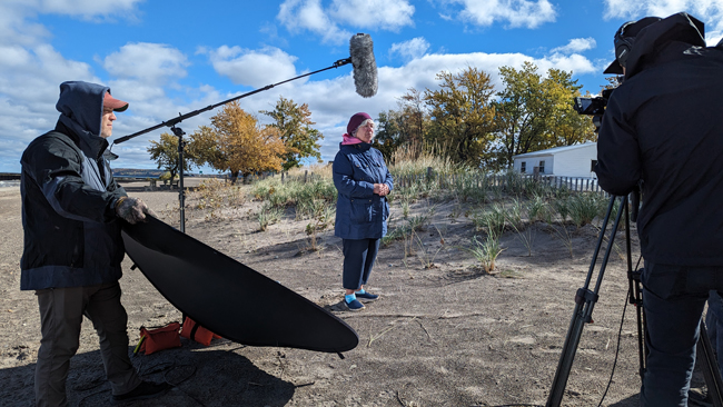 Sodus Point resident Laurie Hayden being interviewed in October 2023 for resilience case study videos that NYSG produced in 2024.