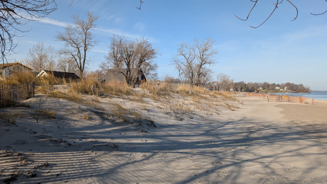 The dune project’s protective dune area at Sodus Point, March 2025. Credit: NY Sea Grant