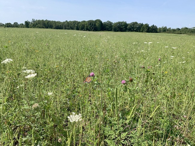 A past NY Great Lakes Basin Small Grants award provided funding to the Thousand Islands Land Trust to restore more than 155 acres of former farmland to native grassland, enhancing habitat for grassland-nesting birds and wintering raptors. Credit: Thousand Islands Land Trust