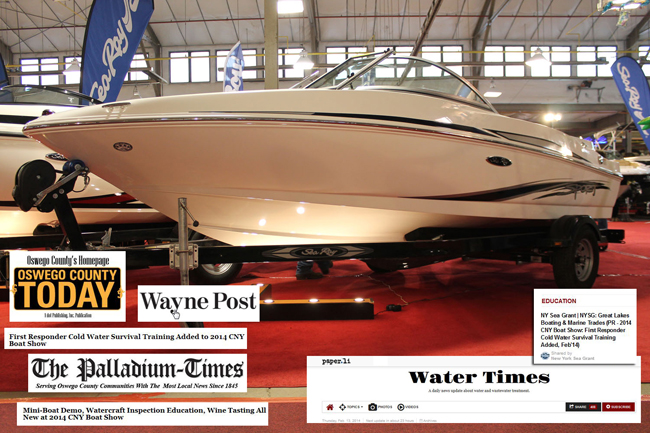 One of the many news outlets that picked up on all of the boating safety efforts showcased at the 2014 Central New York Boat Show was Water Times, a daily e-newsletter that collects online content on water-related topics. Coverage from other outlets included various newspapers (pictured above) and television programs, the latter from which video segments are included below ...