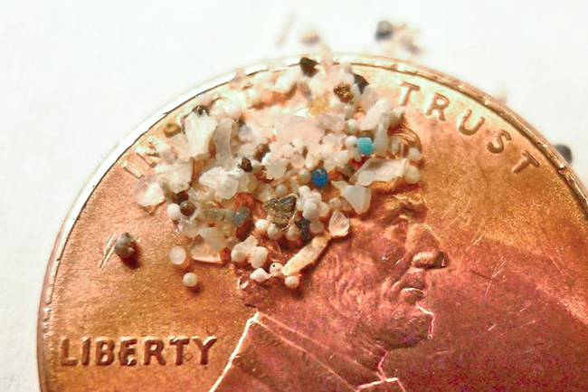 A collection of microplastics can take up a small amount of real estate on the head of a penny. Photo: 5Gyres.org