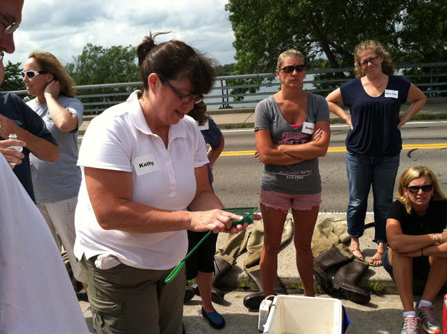 The workshops took teachers out in the field and focused on interactions with scientists and environmental specialists from the U.S. Environmental Protection Agency, NYS Department of Environmental Conservation, U.S. Geological Survey (see photo above), Buffalo-Niagara Riverkeeper, Cornell University, Buffalo State College and many other partners. The teachers plunged into learning by monitor fish populations with seine nets (see first two photo below), ageing fish using otoliths (ear bones) (see third photo below), collecting and identifying plankton and taking water samples. Many of the teachers have passed these new skills on to their students during meaningful watershed environmental education experiences that are funded through the GLRI project.