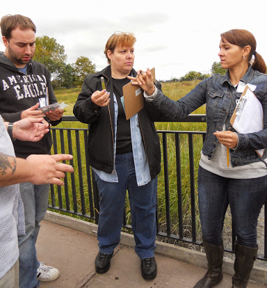NYC middle school teachers at the “Climate Change and the Long Island Sound Estuary” teacher workshop that was held on October 2, 2014 test the water quality of Alley Pond Creek. Alley Pond Creek flows into Little Neck Bay, which discharges to Long Island Sound. Photo: Amy Mandelbaum, NYSG/LISS.