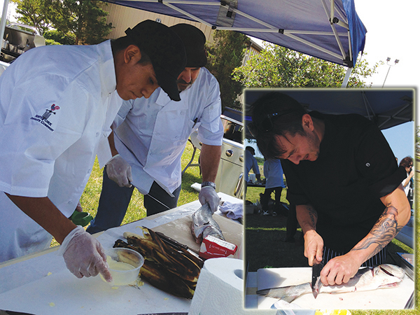 Chef Amaral (at right) and his assistant; (inset photo) Chef Romeo fileting.