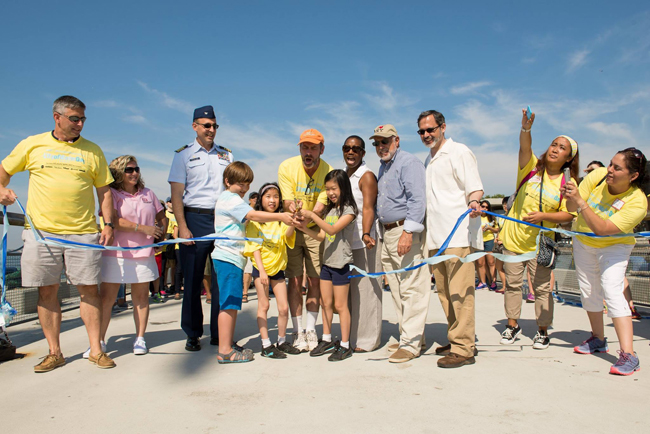 MWA President and CEO Roland Lewis (wearing orange cap) cut the ribbon with help from VIPs to open the seventh annual City of Water Day on July 12, 2014. "City of Water Day is all about fun and recognizing the potential of the untapped resource that is our harbor," said Lewis.
