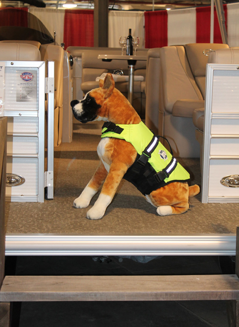 PHOTO (at left): The safety message shared by New York Sea Grant at the Central New York Boat Show includes pets. Photo: Brian P. Whattam / Central New York Boat Show