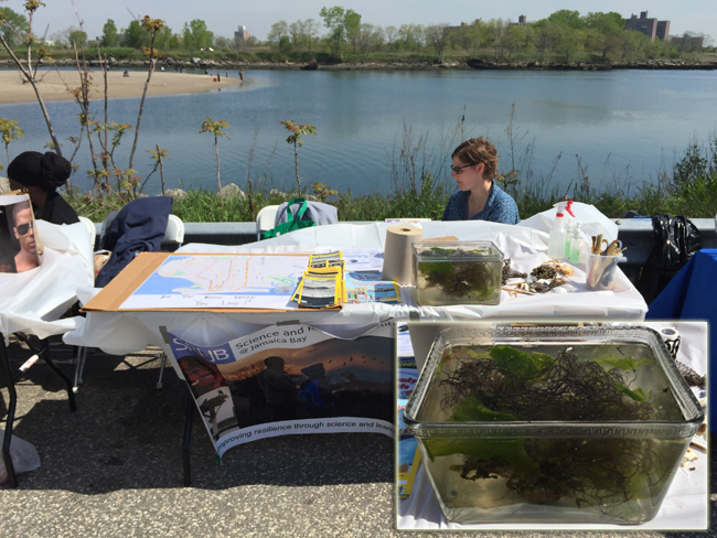 NYSG's Helen Cheng shared a table at "It's My Estuary" Day with Ph .D. Candidate of CUNY Brooklyn College Annesia Lamb (pictured above), who offered a display and activity on local algae species.