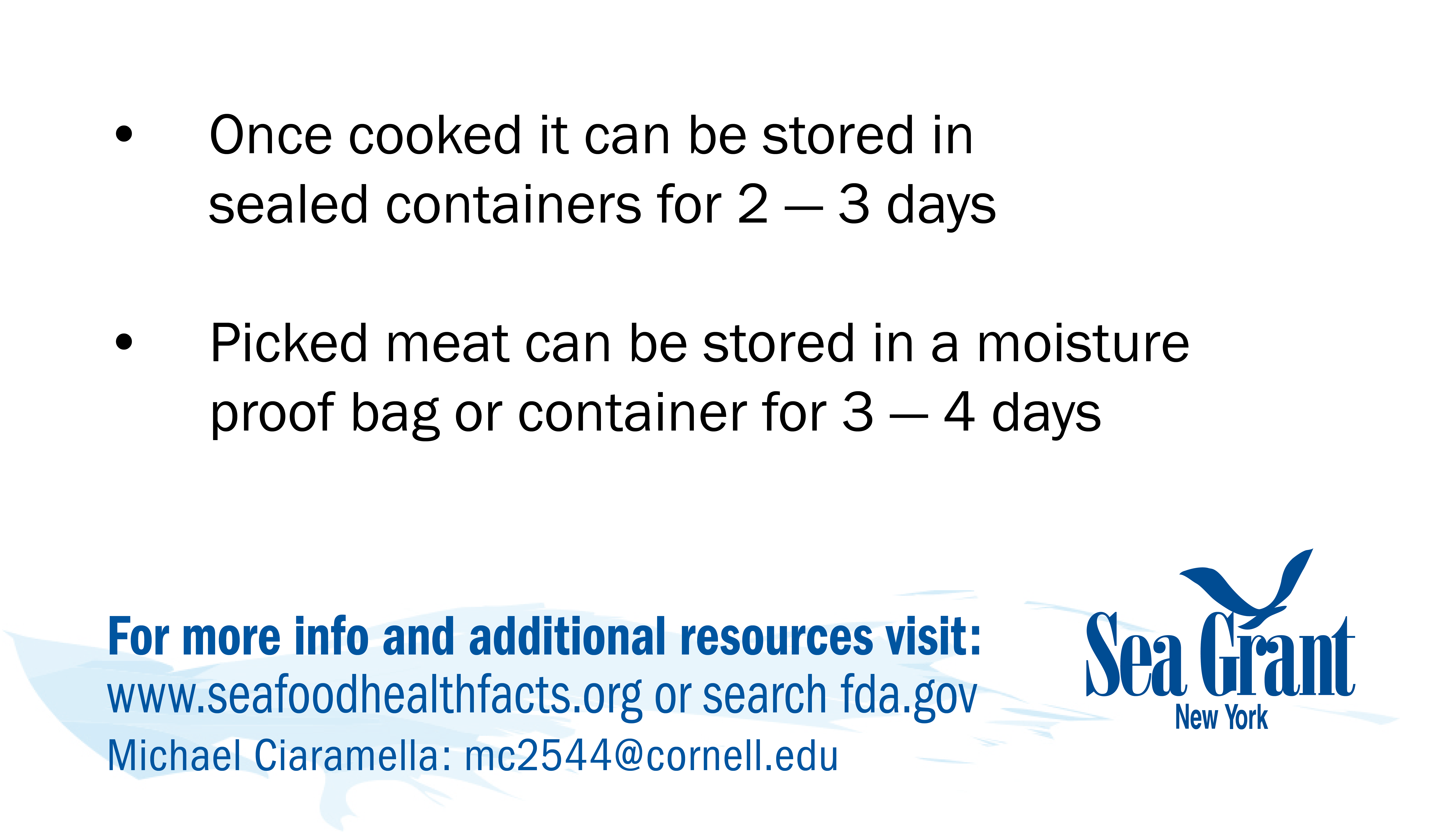 If you have problems downloading any cards or would like them in a different format for use please contact NY Sea Grant's Seafood Specialist: Michael Ciaramella, E: mc2544@cornell.edu, P: (631) 632-8730.
