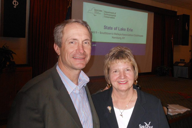 Assemblyman Sean Ryan and Sea Grant Education Coordinator Helen Domske at the 2015 Annual State of Lake Erie Meeting in the Southtowns Walleye Association clubhouse. Photo: The Buffalo News