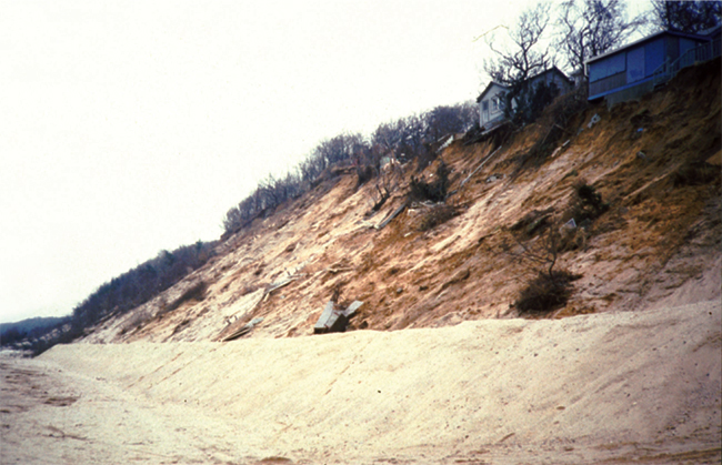 The fact sheet is designed to help landowners identify and understand the primary causes and processes responsible for their erosion issues. With a general understanding of these causes and processes, an owner can move forward with the appropriate professional assistance and effectively deal with the specific erosion problem they have encountered. The fact sheet contains information relating to storm damage, dune erosion, bluff erosion, and sea level rise.
