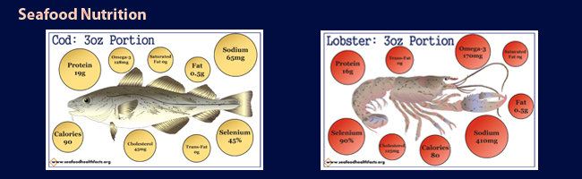 Seafood nutrition postcards are also available for several popular species. These postcards indicate calories, vitamins, minerals and other nutritional information of finfish and shellfish.