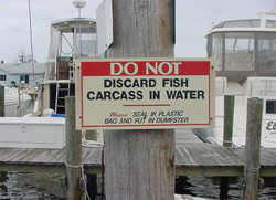 Prohibit disposal of fish waste in the marina basin. Post signs displaying the rules.